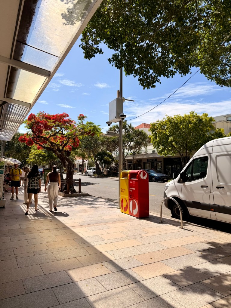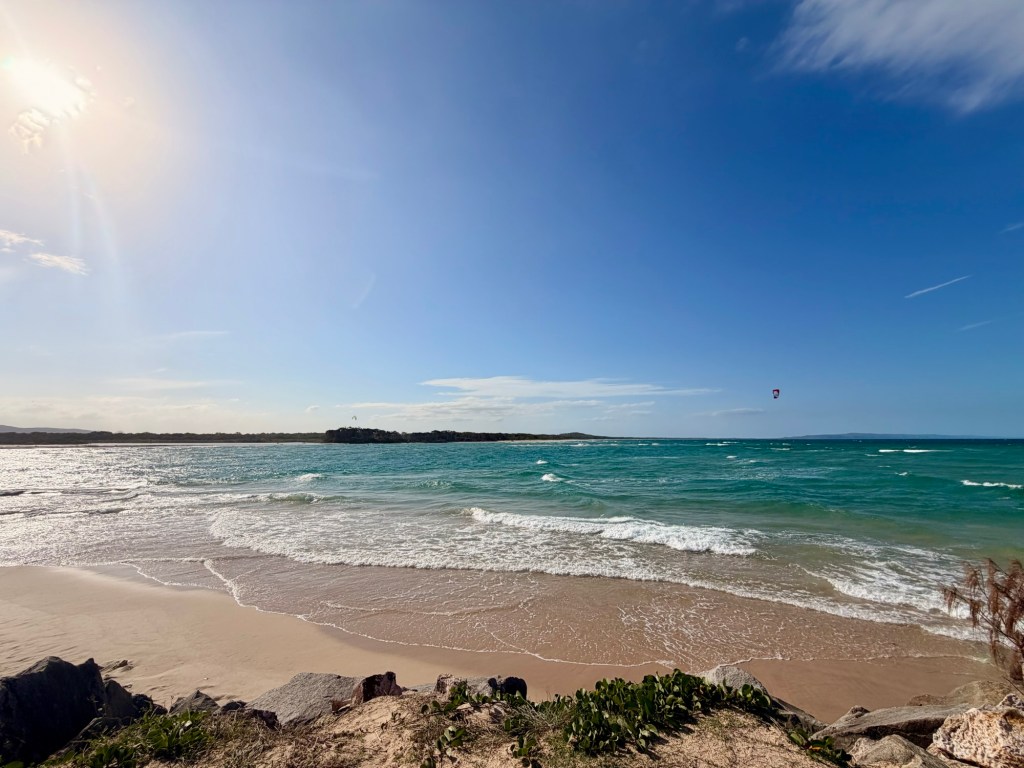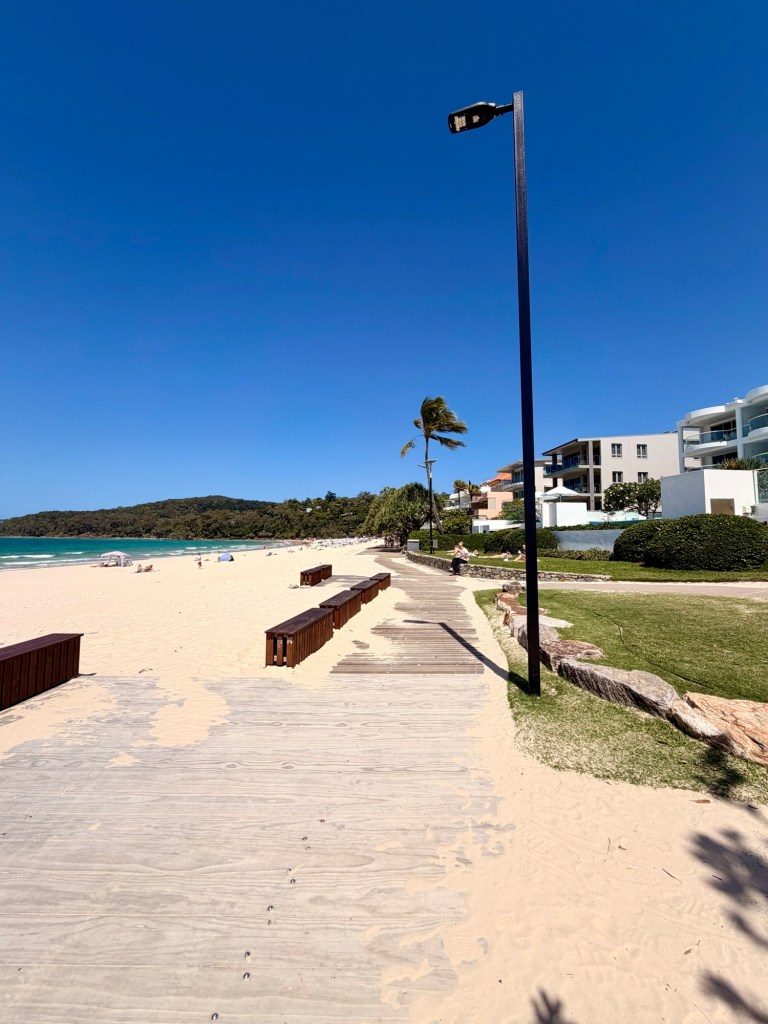 I’m loving this Airbnb! Aside from the shitty internet, the AC and ceiling fans are divine! Plus it’s really clean. I woke up and drove down to Hastings Street which is the main drag by the ocean. Lots of boutiques and restaurants. I was surprised to find parking at the far end of the street but stoked! Free 2 hour parking. I did some minor retail therapy and found the passage path to the beach. First time putting my feet in the sand in Australia and it was glorious! Super soft – like powdered sugar. It was really windy though and the water looked a bit rough. I wasn’t wearing my bathing suit so no chance of me going in the water. I wasn’t hungry so after an hour or so I had seen all of what Hastings Street had to offer. There were quite a few people out. Had I known, I would have looked for a hotel room closer to the beach! The hotels lined the street. I was staying about a 15 minute walk away. Didn’t realize the setup in this town.