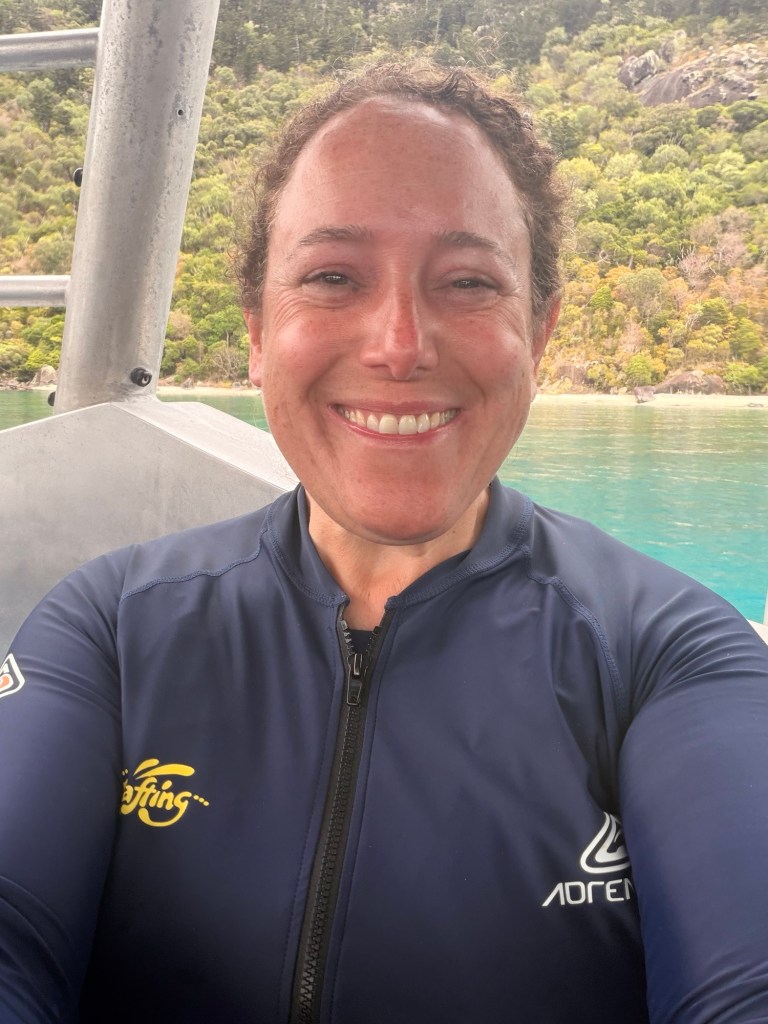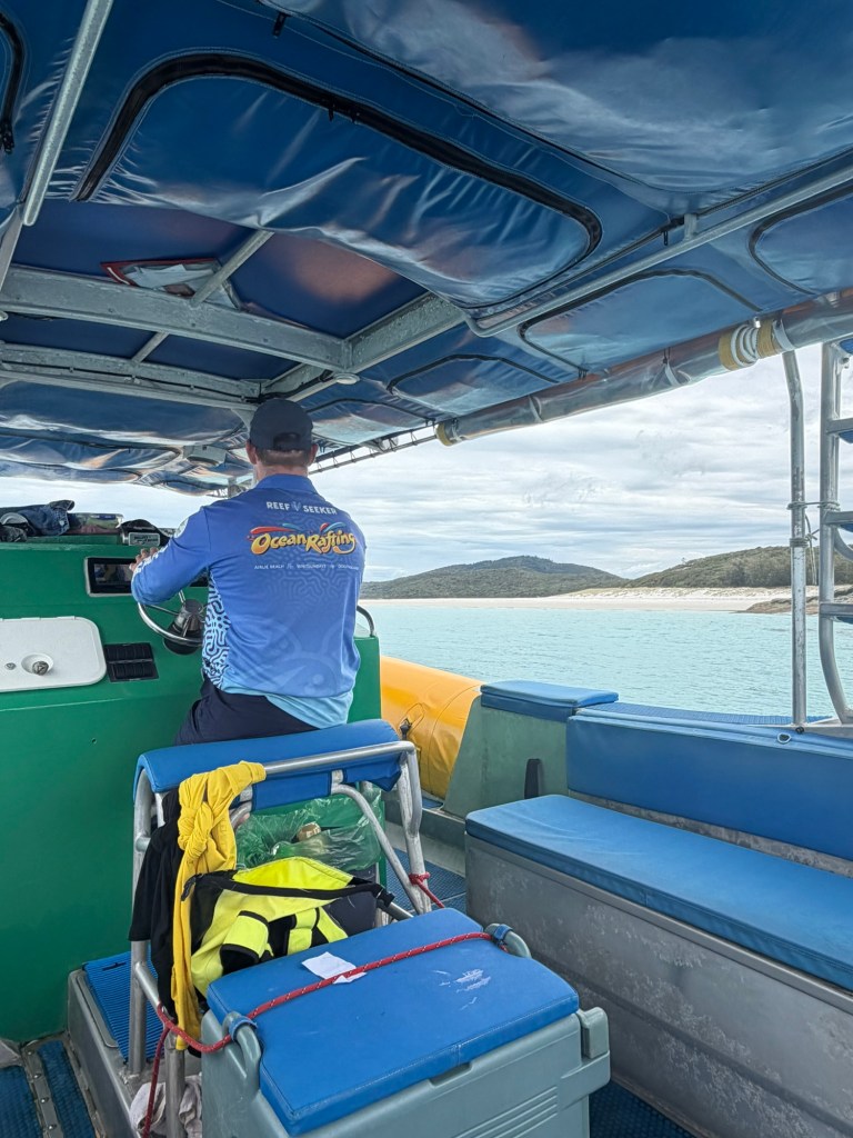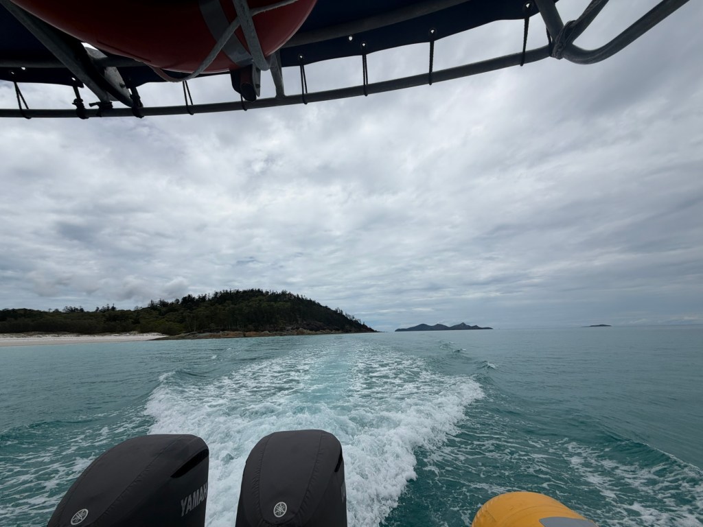 There was about 25 people on the boat including a captain and a guide. Most of the people there were with family, friends or as a couple. The boat was super fast! At one point we got to 37 knots. The captain did some donuts and other fast maneuvers that had everyone hanging in for dear life. We stopped at Daydream Island to pick up 2 couples who were staying at the small island with only 1 hotel. I sneaked a peek at the hotel reviews on Google and it doesn’t sound like a great place – very run down in sum. We quickly departed that island and went another 30-45 minutes to Hook Island. Our first snorkeling spot.