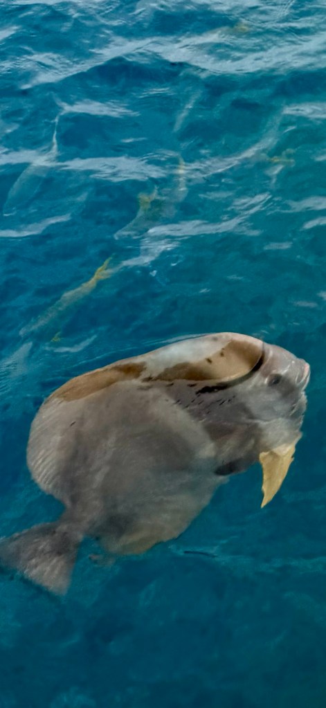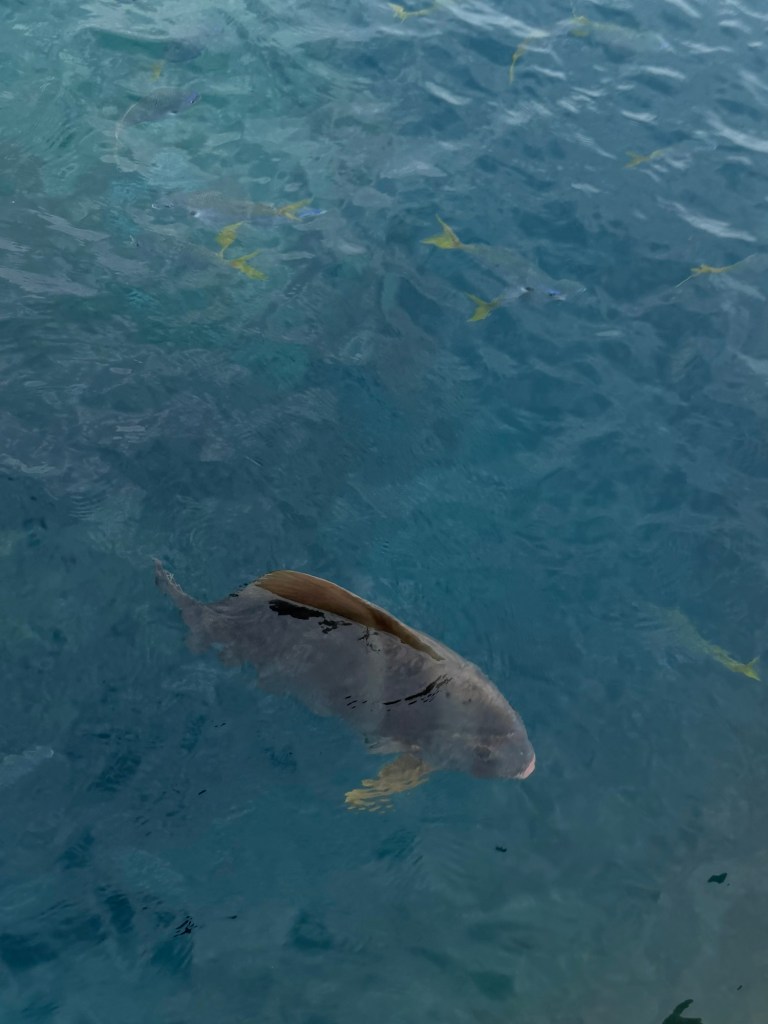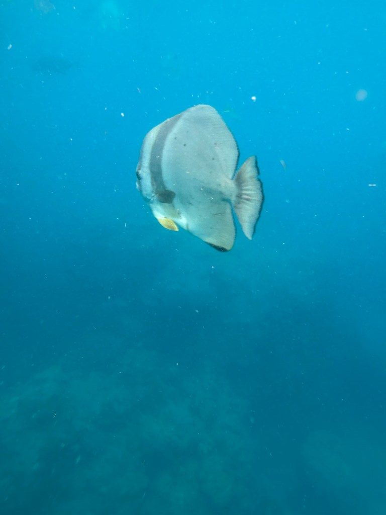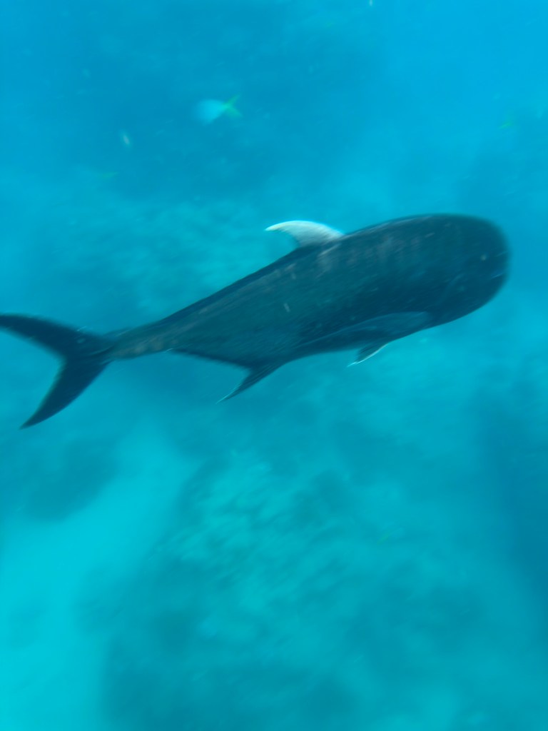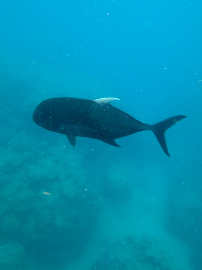 Then it was on to the next spot about 5 minutes away which was my favorite. The amount of fish was insane! Plus there were a good variety and the coral was beautiful too. I need to look up the names of the huge fish I saw! I know one is called a Bat Fish. Can’t remember what the huge black fish is called but it was HUGE! We snorkeled here for about 45 minutes or so. I was STARVING and wondering why we didn’t get the gluten free brownie that was in the itinerary. Thankfully on our way to the next stop the guide passed around these coconut covered bars of something. Delicious but such a tease!
