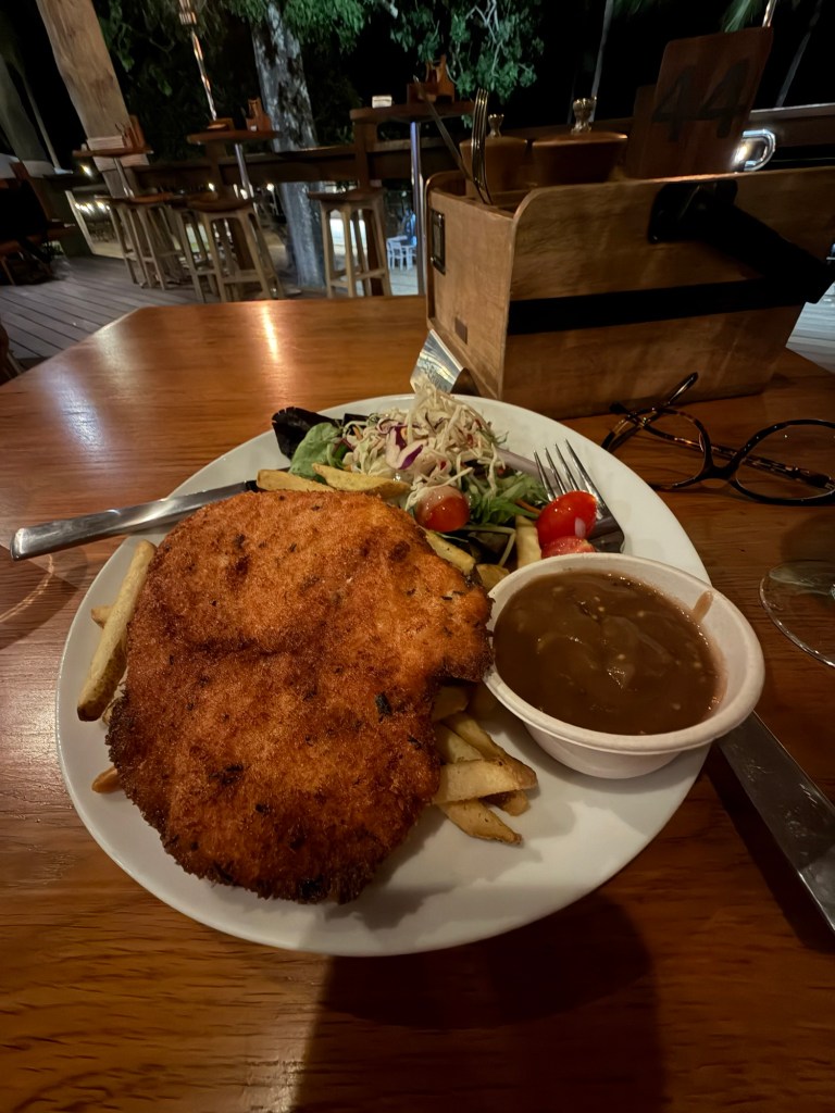 I got back to the apartment and had a very refreshing shower. I made a reservation for 7pm at this place called Northerlies it was good but not at all what I expected. You order your food at a station up front and then you go to the bar and get your drink there. They bring you the food. I had the schnitzel of course. And I was start! The best part of the meal may have been the salad topped but it was good. And the best part is I was able to bolt right after I ate because I had already paid for it!