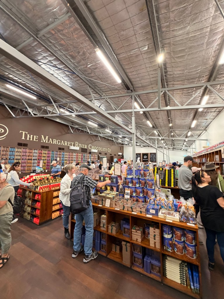 The 2 hour cruise was awesome! The captain narrated the entire cruise – pointing out sights and giving some history. It was really interesting and informative. About an hour into the cruise they served lunch which thank goodness for this picky eater was yummy! I was able to eat everything except the salmon shashimi. Eventually we arrived at this GORGEOUS vineyard called Mandoon Estate. The boat then split into 3 groups. My group went on a really nice and large motor coach to the next vineyard. We went to Lancaster Wines for a tasting and cheese. The first wine was a bubbly and not good. I went to the bar for some other tastings. I really liked the Chenin Blanc. In the end I just wandered around the grounds and enjoyed the sun. I couldn’t seem to join in any of the conversations so I stuck to myself. Took lots of cool photos and just tried to be mindful of the beautiful surroundings. After about an hour we left for the chocolate factory/store. What a shitshow! The driver lets us off the bus and says we have to be back in 20 minutes so it was every man for himself! I bought a few chocolate items but regret the milk chocolate bar. I usually don’t eat plain chocolate. 🤷🏼♀️ There was another shop onsite that sold everything from gourmet soup mixes to oils and condiments. I bought a bag of pasta and what looks like delicious pasta sauce. Plus this apricot and earl grey jam that may or may not be consumed before I fly back to the USA! I’ll probably have the pasta for dinner tomorrow.