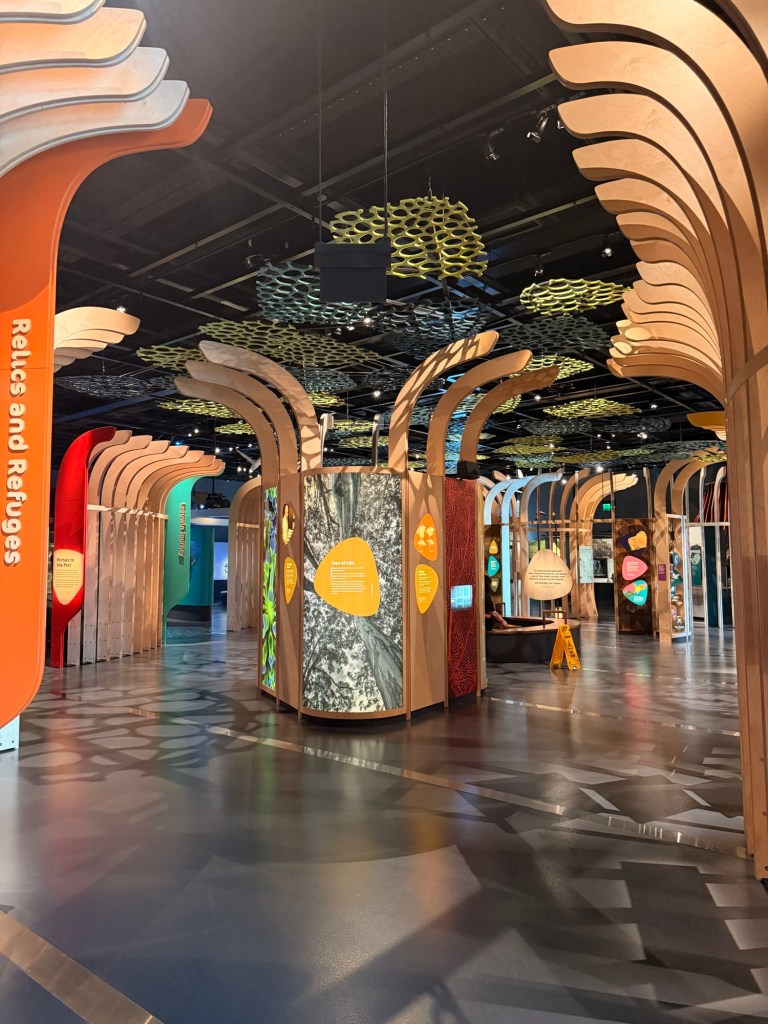 Can’t believe day 5 is over! Had a really nice day. Went to the Western Australia Museum and it was fascinating! I learned a lot about this part of Australia. The museum focused on everything from the effects of climate change – especially human caused – to all about the animals both in and out of the water that live or have lived here to different groups of people who migrated to Western Australia (including the Jews from WW2) to the sports and technology innovations. I was impressed. Plus the museum was relatively empty so it made it easier to see everything at my slow pace. They had 2 docents who approached me and shared some info too. I was in the wildlife section and one of the docents asked if I wanted to see some skins. I was standing by the snakes and that is what I did thought she was referring to – snake skins! I said no thank you! And they actually had a live snake in one of the displays. That was the only living animal there. Kinda random. Everything else was taxidermied.